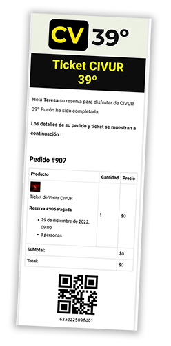 Te llegará un email con los detalles de tu visita y un código QR que deberás presentar el día y hora de tu visita guiada en CIVUR 39°